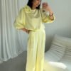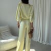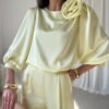 Giana blouse is an elegant proposal made of high-quality satin fabric, which delicately reflects light, adding a subtle glow to the styling. The attention is drawn to the round neckline decorated with an impressive rose, a decorative accent that distinguishes this model and gives it a unique character. The wide 3/4 sleeves in a puffy form emphasize the shoulders, adding lightness and feminine charm to the blouse. The loose fit guarantees comfort and full freedom of movement, making this model not only stylish, but also functional. Giana will work perfectly as part of elegant outfits, just combine it with long satin Elsa pants, a simple blazer, and classic high heels to create a chic look for special occasions. It is the perfect choice for family celebrations, holidays, parties, or other events where you want to look classy and feel comfortable.