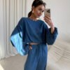 Loose blouse in a modern, slightly shortened style delights with softly falling material and wide sleeves with delicate gathering. The comfortable cut beautifully emphasizes the silhouette, providing freedom of movement at the same time. The model was sewn in Poland with attention to detail and high quality finish, making it an ideal element of premium offer. It looks great both as a set with trousers made of the same fabric, as well as paired with jeans or an elegant skirt, it will work well for everyday wear, work, and meetings.