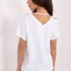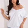 Universal blouse with a casual character, which will work perfectly both for everyday wear and for work. The smooth cut gives it a timeless elegance, making it easy to match with many different styles. Made of high-quality cotton and elastane blend, it ensures comfort and a light fit to the silhouette. Standard length and short sleeves make this model perfect for any time of the year. The blouse has an elegant V-neckline both at the front and back, adding a subtle femininity. A pullover model, emphasizing its comfortable and minimalist character.