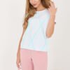 Women’s everyday blouse is a comfortable and stylish proposal for various occasions. Made of a pleasant to the touch blend of cotton and elastane, it ensures comfort, good breathability, and light elasticity, thanks to which it adjusts to the silhouette. The model stands out with a geometric pattern, which gives it a modern and distinctive character. The standard length makes the blouse look great with both trousers and skirts. Short sleeves and a round neckline subtly emphasize the feminine silhouette, adding lightness to the whole styling. The lack of fastening increases comfort of use and makes the model easy to put on. This versatile blouse is perfect for everyday wear, excellent for both work and less formal outings.
