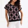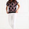 A women’s everyday blouse is a comfortable and stylish option for various occasions. Made of a pleasant to the touch blend of cotton and elastane, it provides comfort, good breathability, and light elasticity, which allows it to adapt to the silhouette. The model stands out with a geometric pattern, giving it a modern and distinctive character. The standard length makes the blouse look great with both pants and skirts. Short sleeves and a round neckline subtly emphasize the feminine silhouette, adding lightness to the entire outfit. The lack of fastening increases comfort of use and makes the model easy to put on. This versatile blouse is perfect for everyday wear, great for both work and less formal outings.