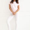 A women’s everyday blouse is a comfortable and stylish proposition for various occasions. Made of a pleasant to the touch blend of cotton and elastane, it provides comfort, good breathability, and light flexibility, thanks to which it adjusts to the silhouette. The model stands out with a geometric pattern, which gives it a modern and distinctive character. The standard length makes the blouse look great with both trousers and skirts. The short sleeve and round neckline subtly emphasize the feminine silhouette, adding lightness to the whole outfit. The lack of fastening increases the comfort of use and makes the model easy to put on. This is a universal blouse perfect for everyday wear, excellent for both work and less formal outings.
