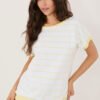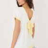 A blouse with a casual character is a stylish and comfortable choice for both everyday wear and work. Made of high-quality cotton and elastane blend, it ensures comfort, breathability, and light elasticity, making it well-fitted to the silhouette. The model is adorned with a timeless striped pattern, giving it a classic yet fashionable look. The standard length makes the blouse fit well with various wardrobe items, from pants to skirts. The short sleeve and round neckline at the front emphasize its versatile character. The back attracts attention with an eye-catching V-shaped cutout and a decorative bow, adding feminine charm and originality to the overall look. The lack of fastening makes the blouse comfortable and easy to put on. It is an excellent choice for women who appreciate a combination of classic style with subtle, decorative details.