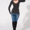 Blouse made of thin, nice to the touch knitwear. Sleeve and bottom left raw. On the back original neckline finished with a welt.