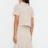 Simple blouse with short sleeves and a layered turtleneck. Blouse fastened with a covered zipper. Ideal for many occasions.