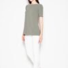 Short-sleeved blouse with an elongated cut. Impressive square cut-outs on the back. Perfect with matching trousers.
