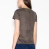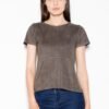 Airy, suede short-sleeved blouse with a semicircular neckline. Decorative gold zip at the back. Classic cut, perfect for everyday styling.