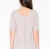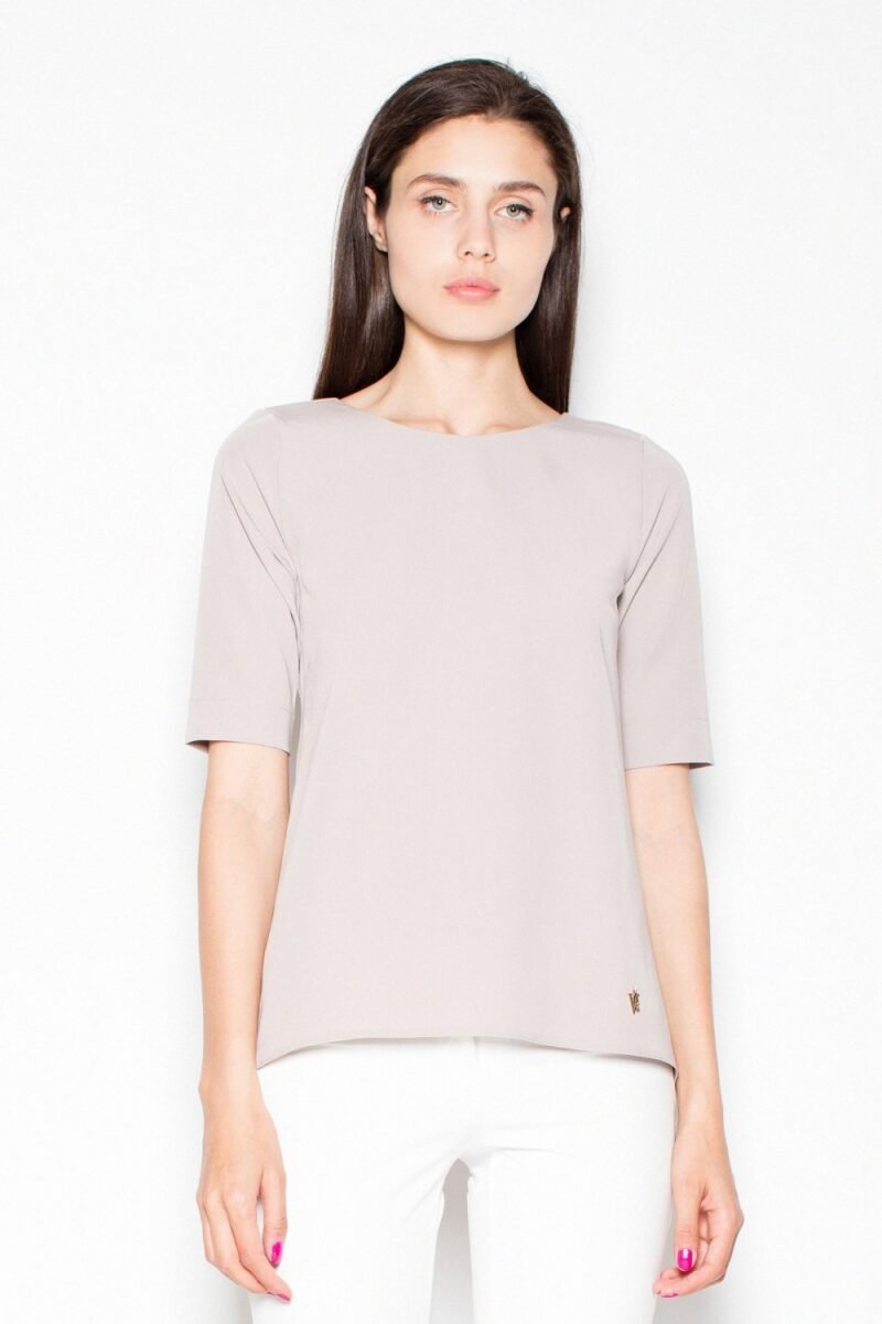 Elegant short sleeve blouse with asymmetrical cut. It features a cut-out at the back which beautifully emphasizes the back. Blouse goes well with matching trousers.