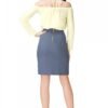 Blouse tied at the neck sewn from a delicate fabric. A straight neckline revealing shoulders, pleated with an elastic band so that the blouse remains in place, sleeves 7/8 long.