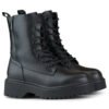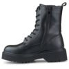 These stylish baggers are the perfect choice for the cooler days of autumn and winter. Designed for women who value not only a fashionable look, but also wearing comfort, these shoes are the perfect complement to any casual styling. The upper of the bags was made of durable eco-leather, which makes them not only visually attractive, but also weatherproof. Their height of 17 cm provides additional protection from the cold, ideal for autumn and winter days. The interior of the shoes is padded with a soft textile insole, which guarantees comfortable all-day wear. In addition, the textile insulation makes them perfect for winter walks or shopping. Convenient lacing allows you to precisely adjust the shoes to your foot, making them more comfortable to wear. In addition, the zipper located on the side makes it easy to put on and take off the shoes, which is particularly practical. A low heel of 5 cm adds elegance to the shoes, while remaining comfortable and stable. The round toe gives them a fashionable, casual character. These black baggers are not only practical, but also stylish, which makes them an indispensable part of your winter closet.