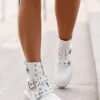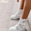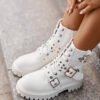 Women’s boots made of eco leather. Set on a flat heel. Fastened with a zipper. Rounded toe caps. The main asset of this model is decorative straps with buckles. You will use this stylish model for many autumn-winter stylizations!