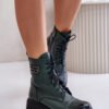 Women’s boots made of natural leather. Set on a massive flat heel and platform. They have both lacing and a zipper, which makes them comfortable to put on and fit the foot. A decorative gold detail on the side of the upper, which adds elegance. The interior is insulated with a shoe blanket. Ideal for autumn and winter styling, these boots combine elegance with functionality.