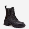 Women’s ankle boots from the Vinceza brand, made of natural leather. Set on a massive block heel, they provide stable walking and comfort throughout the day. The model has both lacing, which allows for a perfect fit to the foot, and a zipper for easy putting on. The interior lined with shoe fleece guarantees warmth on colder days, making these boots perfect for everyday autumn-winter stylizations.