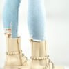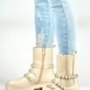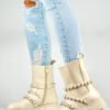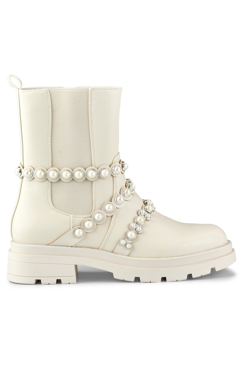 The shoes have a round toe, which adds to their elegance and makes them fit a variety of styles. The high heel is flat, making them comfortable to wear all day long. In addition, the height behind the ankle gives additional support and stability. The boots have a practical zipper, which makes it easy to put on and take off the shoes. Embellishments in the form of pearls give them a unique character, making them an excellent choice for both special occasions and everyday wear. Women’s boots are made with attention to detail and high quality stitching, which guarantees their durability and strength. These modernistic boots will be a perfect addition to any winter closet, adding style and elegance to any outfit.