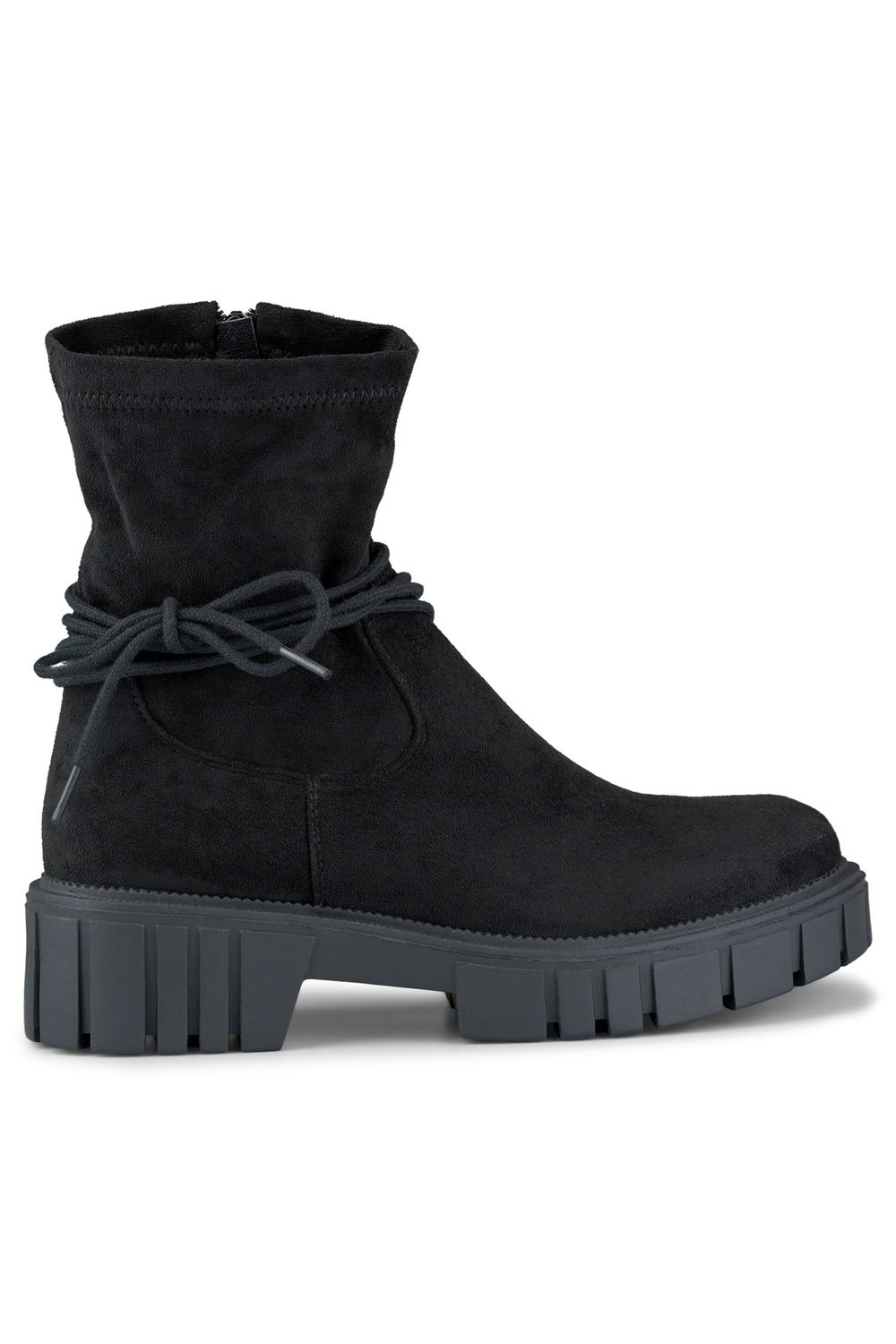 These boots are the perfect choice for colder days. Their stretchy eco-suede leather upper is 18 cm high, providing warmth and a fashionable look. The interior of the boots is padded with a textile insole for added comfort. A sturdy heel and a zipper for easy putting on are other advantages of these boots. Their round toe makes them suitable for many outfits. For comfort and style, choose these boots for fall and winter.