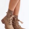 Fashionable women’s boots were made from a combination of eco leather AND textile material. The model slips on and additionally has lacing. Set on a platform and a flat heel. Soft, eco leather insole will provide comfort during use. Rounded toe box. Ankle-length upper. You should definitely have them!
