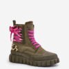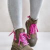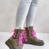 Women’s boots made of eco-suede. Zippered and laced. Set on a platform, which perfectly insulates from the cold ground. Rounded toes. Insulated inside in the form of a shoe blanket. This model is distinguished by additional decorative lacing at the back. You should definitely have them!