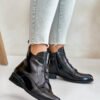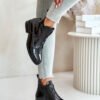 Women’s boots by S.Barski made of eco leather. Set on a flat heel that will ensure stability on every step. Fastened with a zipper. Interior insulated with shoe blanket. Rounded toe caps. Decorative details and elastics on the front.