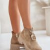 Women’s half shoes made of high-quality natural suede are a combination of elegance and comfort. The classic rounded toe gives them a subtle touch. On the front of the shoe there is a gold ornament, which is a tasteful accent, emphasizing the elegant appearance of this model. They are fastened with a zipper and additionally feature lacing. These half shoes are perfect for both casual and more formal occasions!
