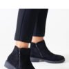 Black ankle boots with metal inserts made of eco-suede by the Branda brand are a proposal for women who appreciate modern design and comfort. They have an almond toe and a pointed design, giving them a trendy look. The flat heel guarantees comfort even during long wear, and the ankle height adds elegance. These boots are an excellent addition to the autumn-winter wardrobe, thanks to their unique design and high-quality craftsmanship. Equipped with insulation, they provide warmth on cold days. The zip closure makes them easy to put on, and the sturdy rubber sole ensures stability with every step. The boots are available in black, perfectly matching many styles.