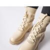 Beige lace-up ankle boots Portico are the perfect winter footwear for any woman who values comfort and a fashionable look. The shoes have a flat heel, making them comfortable even during long wear. The lace-up design ensures a perfect fit to the foot, and the substantial round toe gives them an elegant look. The high ankle design further protects against the cold, and the lacy construction gives them lightness and delicacy. The boots are a perfect complement to both casual and more formal outfits. Made of high-quality synthetic leather, they provide durability and comfort. Discover the ultimate in fashion comfort with beige lace-up ankle boots Portico for the upcoming fall/winter season!