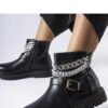 Black Mezzavia ankle boots with decorative chains are a perfect choice for every fashionable woman. Their unique design, thanks to precisely placed decorations on the boot shaft, makes them extremely stylish and eye-catching. Additionally, the rubber sole provides excellent grip and durability, and the comfortable zipper closure makes it easy to put on and take off the shoes. These black ankle boots are the perfect complement to both casual and elegant stylings, giving them a unique character. Thanks to their versatility, they will work great for everyday wear as well as special occasions. Stay on trend and add a touch of fashionable edge to your wardrobe with Mezzavia ankle boots with decorative chains!