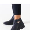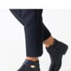 Black ankle boots with gold inserts made of eco-leather by Casetra are the perfect addition to a winter wardrobe. Their high heel gives them elegance, and the delicate almond toe makes them subtle and stylish. The gold details add a touch of luxury, making them a great choice for many occasions. The boots are lined, which will provide warmth on cold days, and the sturdy rubber sole guarantees comfort when wearing them. The zipper closure makes them easy to put on. These boots will surely make you look fashionable and feel comfortable throughout the winter.
