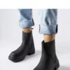 Black insulated rubber ankle boots Clotilde are a perfect solution for winter. Made of durable rubber, they are resistant to moisture and snow, providing thermal comfort and protection against unfavorable weather conditions. Their fashionable design, with ankle height and round toe, suits both casual and elegant stylings. The insulated insole provides additional thermal insulation, eliminating the feeling of cold and keeping the foot warm. Clotilde boots are a combination of functionality, style, and popularity, which will make you feel comfortable and fashionable even on the coldest days. An excellent proposition for women who appreciate designer accents in their wardrobe.