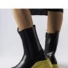 Black ankle boots with a colorful sole from Delebio are a perfect choice for women who value elegance and comfort. Their round toe gives them a subtle character, and the ankle height adds a touch of modernity. The boots have a practical zipper, making it easy to put on and take off, perfect for busy people. The flat heel provides comfort for all-day wear. These boots are not only stylish, but also warm thanks to the insulation, perfect for cooler days. The colorful green sole adds character and makes them an absolute must-have this fall and winter. Available at an affordable price, they are the perfect addition to any winter wardrobe, regardless of preferred style. The high quality craftsmanship and versatile design make these boots sure to meet the expectations of even the most demanding customers.