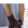 Dark brown Fallkirk ankle boots are the perfect footwear for cooler autumn-winter days. The boots, made of suede-like eco-leather, have rounded toe caps and a trendy thick sole with a protector on the bottom. Fastened with a zipper on the inner side of the shaft and additionally laced at the front. Decorated with a strap with buckles in the color of the shaft, they add character to the whole outfit. The insulated interior provides warmth and comfort while wearing. Fallkirk ankle boots are perfect for casual outfits. Standard sizing, so we recommend choosing your own size.