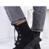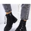 Black eco-suede Chesterfield ankle boots are perfect footwear for cooler days. They have a thick sole with a protector, which ensures comfort and protection against moisture. The boots are laced at the front with round laces and have a round toe. Made of eco-suede leather, they are lightly insulated on the inside, making them ideal for autumn and winter walks. They look fashionable when combined with faux leather leggings and a slightly oversized sweater. The sizing is standard, so it is worth choosing your usual size when making a purchase. The boots have a zipper closure, and the sole is made of black plastic. This footwear is from the Autumn/Winter collection, which will perfectly complement your autumn-winter wardrobe.