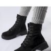 Black lightly insulated eco-suede Cunha boots are the perfect footwear for the coming autumn and winter. Comfortable and stable, thanks to the flat heel and lacing, they provide a perfect fit to the foot and additional support. The round toe adds to their elegance, making them suitable for a variety of outfits. The insulated insole inside provides warmth even on cold days, making them a great choice for autumn and winter walks. The ankle height gives them a modern touch, while protecting them from the cold and moisture. Cunha boots are not only fashionable, but also very practical, ideal for anyone looking for affordable, fashionable and functional footwear for winter. They look great in both everyday and more elegant outfits. Catch a touch of warmth and style with these winter insulated boots!