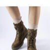Dark green decorative eco-suede Castore baggers are innovative shoes that will delight anyone who appreciates comfort and style. Made of high-quality materials, these baggers are an ideal choice for winter, thanks to their insulating and warm interior. Their round toe and lacing ensure a perfect fit to the foot, while the zipper makes it easy to put on and take off the shoes. The rubber platform and medium heel guarantee stability and comfort when walking. These are not only elegant, but also affordable footwear that will perfectly complement any winter outfit. In addition, the shoes have an outer layer of eco-suede and a green-colored sole, which gives them a unique character. Ideal for people who like to be in fashion and feel comfortable. Available in the Fall/Winter collection.