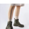 Dark green ankle boots with a pocket from Spadafore are a stylish and practical choice for those who appreciate modern style and comfort. Made of high-quality rubber, they are durable and resistant to weather conditions. Their round toe gives them a modern character, while the laced closure and practical zipper on the back of the shoe allow for a perfect fit to the foot. The high shafts reaching behind the ankle add dynamism and character to the boots. The dark green color makes them easy to match with various outfits. Ankle boots with a pocket from Spadafore are a combination of modernity and functionality that perfectly complements urban outfit trends for the fall/winter season.