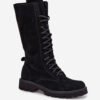 Women’s ankle boots made of natural suede are a perfect choice for any occasion. Reaching mid-calf, they perfectly highlight the leg, adding slimness to it. The entire length of the shaft is decorated with lacing, which not only catches the eye but also allows for a perfect fit to the leg. Additionally, the boots are fastened with a zipper, which makes it easier to put on and take off. These boots are a great choice for both daily and more elegant outfits.