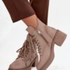 Women’s ankle boots from the Vinceza brand made of natural leather are perfect footwear for cooler days. The stable block heel ensures comfort while wearing, and the combination of lacing with a zipper makes it easy to put on and adjust to the foot. The interior lined with soft shoe lining ensures warmth and comfort, while the subtle leaf embossing on the side adds a stylish accent to the whole. This is a model that will work well both for everyday wear and in more elegant stylings.