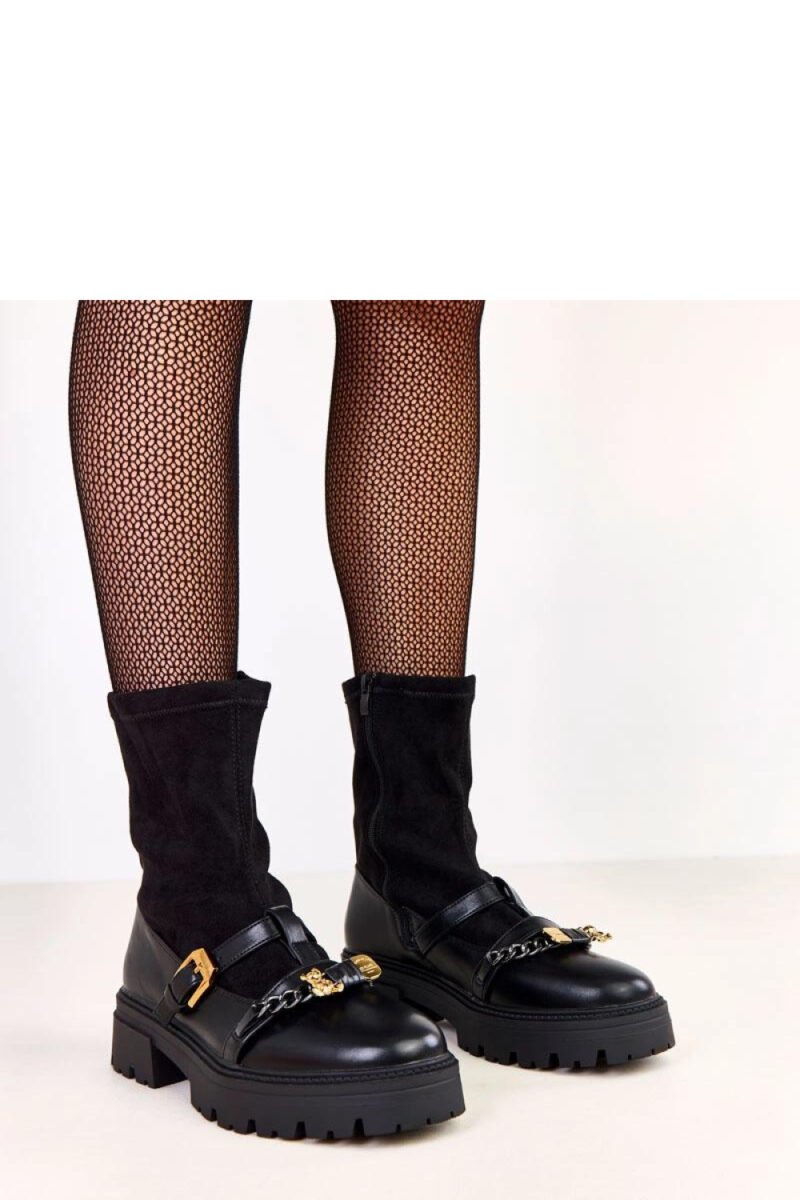 Stylish and eye-catching women’s ankle boots made of a combination of suede-like eco-leather and eco-leather, which combine elegance with everyday comfort. The model is insulated, providing warmth on cooler days. Ankle boots with a height above the ankle and a shaft of 20 cm perfectly fit the foot, and a round toe, heel, and low platform guarantee comfort while walking. The side zipper makes it easy to put on and take off quickly. A decorative buckle and a chain with a teddy bear-shaped pendant add a unique character, giving the boots a girly and fashionable accent. The synthetic insole provides comfort when worn, and the boots are new and ready to wear. This is the perfect choice for women who appreciate a fashionable look, comfort, and subtle, eye-catching details in their everyday outfits.
