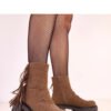 Stylish ankle boots on a thick sole that combine comfort with a striking style. Made of high-quality faux suede leather, they look stylish and fit perfectly into autumn-winter trends. The model stands out with decorative fringes that give the boots lightness and character, while the round toe ensures comfort. The thick sole and stable 5 cm heel guarantee a confident step and comfort even during longer walks. Thanks to the interior lining and zipper closure, the boots are practical and warm on colder days. The 14.5 cm high upper elegantly wraps around the ankle, emphasizing the silhouette and creating a fashionable, modern look.