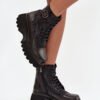 Women’s boots by Artiker are stylish footwear designed for colder days. Made of natural leather, they stand out for their durability and trendy look. Set on a stable platform, they provide comfort and a modern appearance. The model features both lacing and a practical zipper, making it easy to put on and adjust to the foot. The upper is decorated with trendy inscriptions and a strap with a decorative detail. The warm interior makes them perfect for the autumn-winter season.