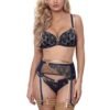 Perfectly cut brazilian thong combining satin soft microfiber, golden shimmering embroidery and transparent tulle. Complementing the bra creating this beautiful richly decorated set.