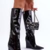 Stylish women’s boots were made of eco leather. They have a pointed nose, which optically slenderizes the leg. Set on an anchor. Cut before the knee with a zipper along the entire length of the upper. In addition, the boots have a stiffened heel counter. Soft insole will ensure comfortable use of footwear. Ideal model for dresses or skirts. It should not be missing in your closet!