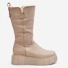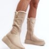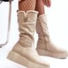 Women’s boots were made of natural leather. This model features a zipper on the side of the upper. The interior has been insulated with natural wool. The heel counter is stiffened. The boots are set on a massive platform and an anchor. They have a decorative element on the side of the upper. This model will be perfect for cold winter days.