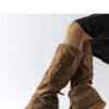 Putignano dark brown boho style boots are a great choice for those who appreciate fashionable looks and comfort. Made of high-quality eco leather, they ensure durability and easy maintenance. Their high heel adds elegance, while they are comfortable to wear for long periods of time. The boots have a slip-on closure, making them easy to put on and take off. Their classic yet modern design makes them suitable for a wide variety of outfits. In addition, they feature an anchor for stability and to add a few inches of height. Perfect for winter, these boots will be a great addition to any woman’s closet.