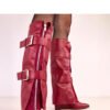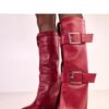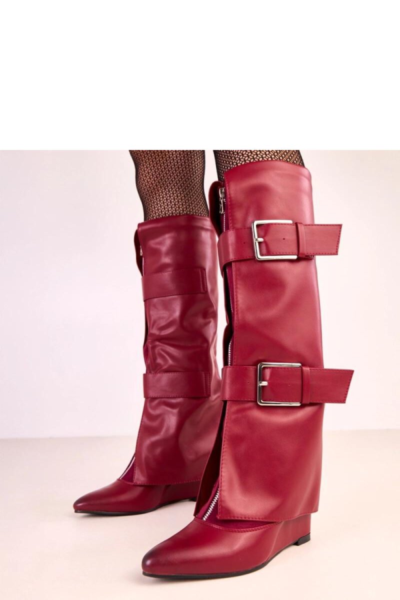 Elegant and stylish knee-high boots that combine classic design with modern finishing. Made of high-quality faux leather, they look extremely impressive, making them the perfect addition to autumn-winter outfits. The model stands out with a turned-down shaft and decorative buckles, giving the boots a unique character and emphasizing their fashionable look. The pointed toe adds elegance and visually slims the foot, while the 8 cm wedge provides comfortable lift and stability while walking. Thanks to the interior insulation, the shoes are perfect for cooler days, offering comfort and warmth. The zip closure makes it easy to put on, and the 37 cm shaft beautifully fits the leg, emphasizing its shape. These classic, high boots are perfect for both dresses and skinny pants, ideal for women who appreciate style and comfort.