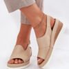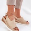 Women’s leather sandals are an elegant option for warm days. Set on a wedge heel, they provide stability and comfort throughout the day. Fastened with a buckle and adjustable strap, they allow for a perfect fit to the foot. The soft insole guarantees comfort, and the classic design makes these sandals a perfect choice for dresses and fabric pants, adding lightness and elegance to the outfit.