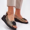 Elegant and stylish sandals made of natural leather are a perfect choice for summer days. Set on a wedge heel, they provide comfort and stability throughout the day. At the front, there is a modern, geometric decoration that adds a unique character to them. Fastened with a buckle and an adjustable strap, they allow for a perfect fit to the foot. The leather insole guarantees comfort, making these sandals the perfect choice for summer styling.