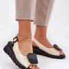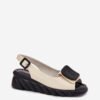Women’s sandals made of natural leather, set on a wedge, are a stylish proposal for hot days. This model is characterized by a decoration placed in the front, which gives it a unique character. They have a buckle closure with an adjustable strap, allowing for a perfect fit to the foot. The soft insole provides comfort for all-day wear. These sandals will be a great choice for summer outfits, combining elegance with comfort.