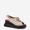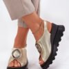 Elegant women’s sandals made of natural leather are a perfect choice for warm days. Set on a wedge heel, they provide comfort and stability throughout the day. The model is distinguished by a front decoration that gives them a unique character. The leather insole guarantees comfort, and the sole with a tread ensures proper grip, making these sandals combine elegance with functionality. Perfect for summer stylings, both for everyday wear and special occasions.