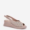 Openwork women’s sandals made of natural leather are a combination of elegance and comfort. Set on a wedge heel, they provide comfort and stability throughout the day. There is a subtle decorative detail at the front that adds character to them. Fastened with a buckle, they allow for a perfect fit to the foot. The leather insole ensures comfort when wearing, making these sandals an excellent choice for summer stylings. Perfect for warm days, they combine functionality with a fashionable look.