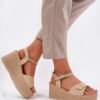 Women’s sandals made of eco suede. Set on a wedge and platform with a braid imitation, they provide comfort and stability throughout the day. At the front, there is a decorative buckle that adds a unique character to them. The model fastened with a buckle allows for a perfect fit to the foot, and the soft insole guarantees comfort. These sandals will be a perfect complement to summer stylizations.